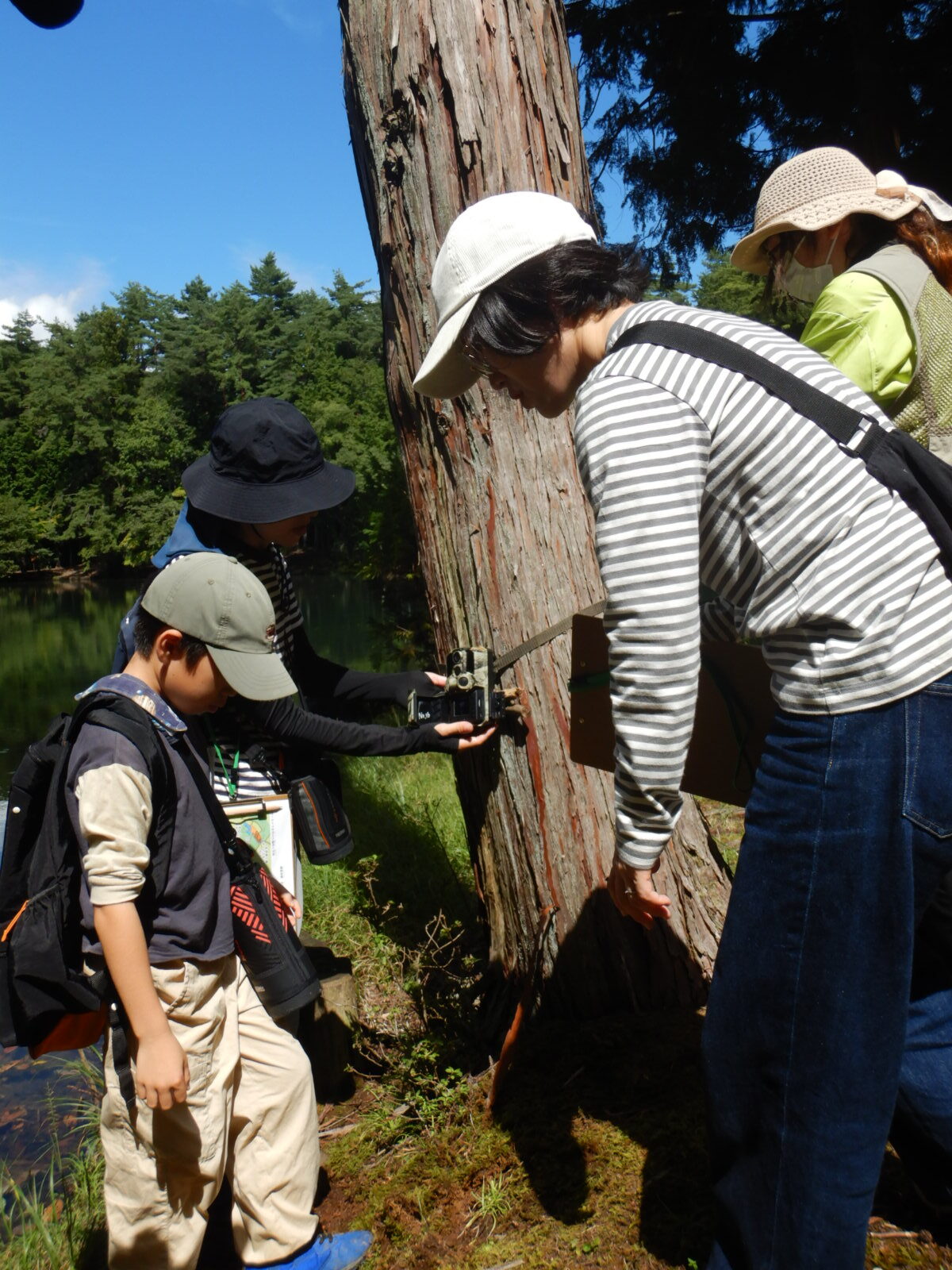 それを探るべく参加者の方と一緒に北伊奈ヶ湖周辺にセンサーカメラを設置しました。