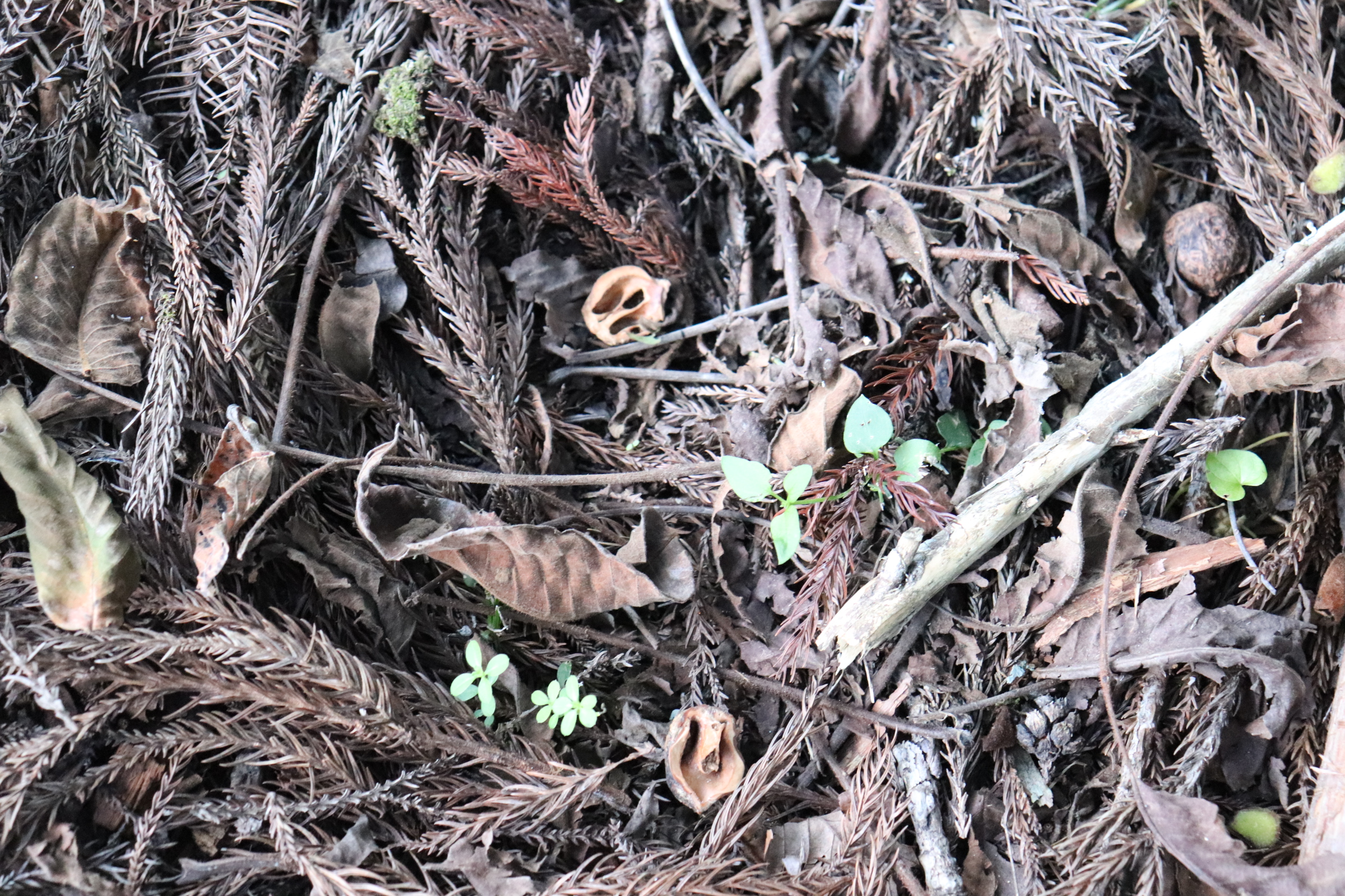 このクルミたちもリスが冬のために隠したものなのでしょうか…。答えはリスのみぞ知る…。