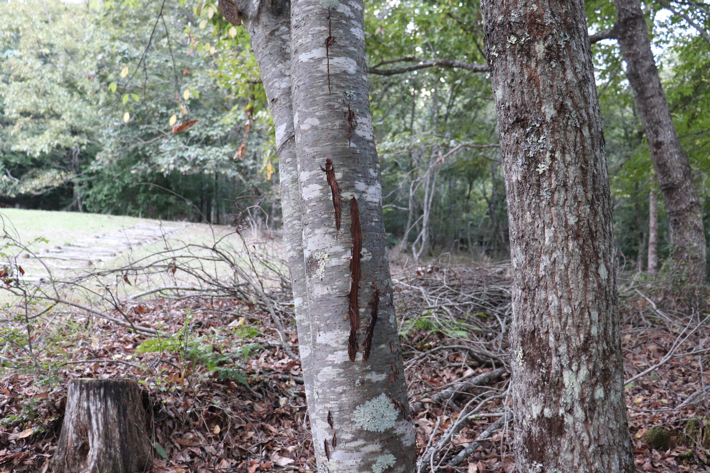 角研ぎあとは自慢の角を使って木に跡をつけることで「ここは自分の縄張りだぞ!」と周囲に教えているのです。