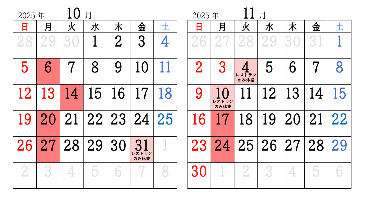 準備期間として新たに、10月31日(木)、11月4日(火)、11月10日(月)が休業日となります。
