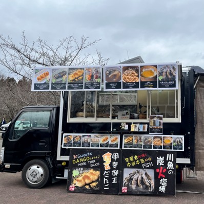 出店内容:川魚の塩焼き、ほぐし飯、大粒団子、わらび餅、水餅スカッシュなど