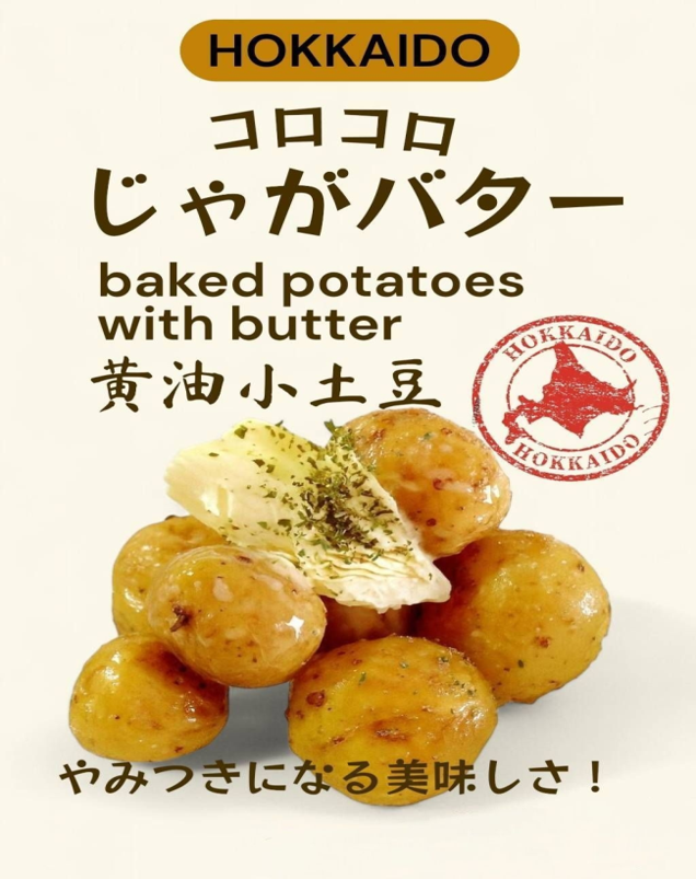 季節に応じて旬の美味しい食材を提供してます!今季は主に北海道産の新じゃがのマチルダ・男爵の小芋を使った揚げじゃがバターを販売してます!