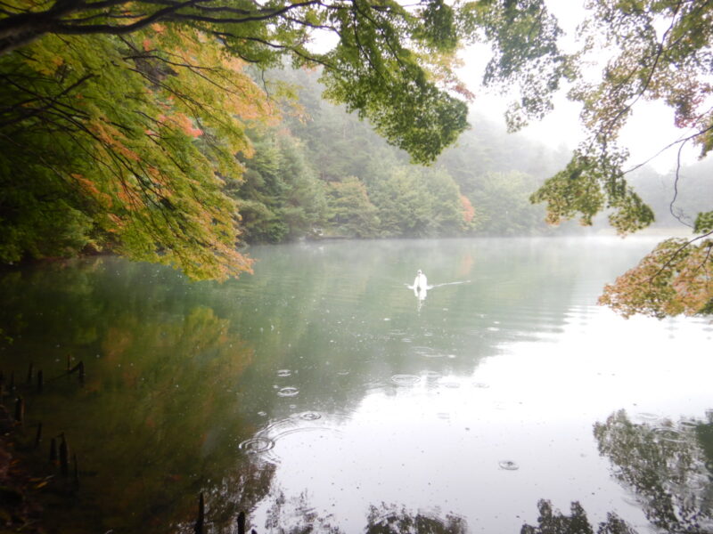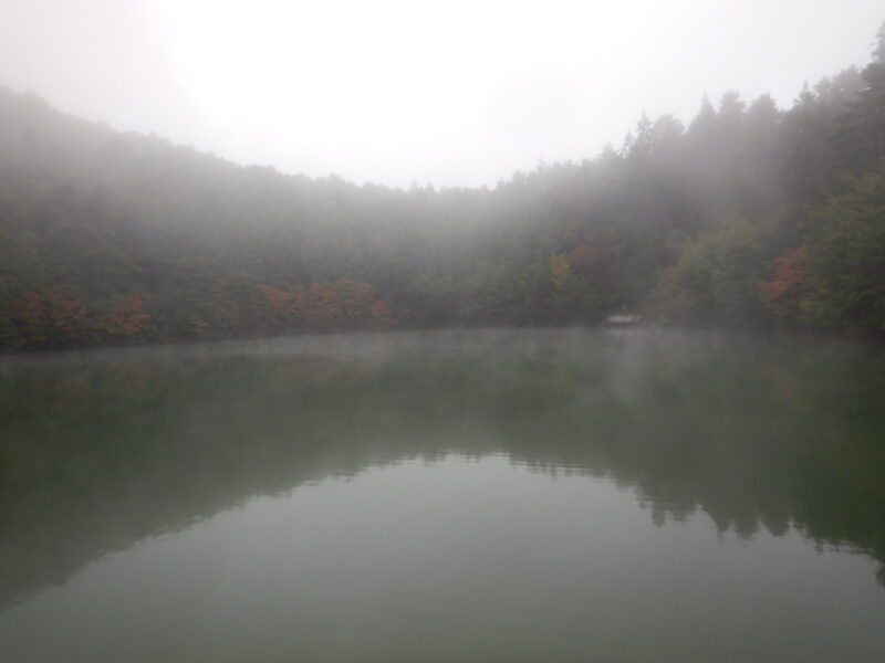 南伊奈ヶ湖は霧が少し深く、紅葉の様子が見づらくなっております。
