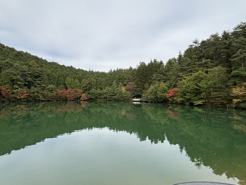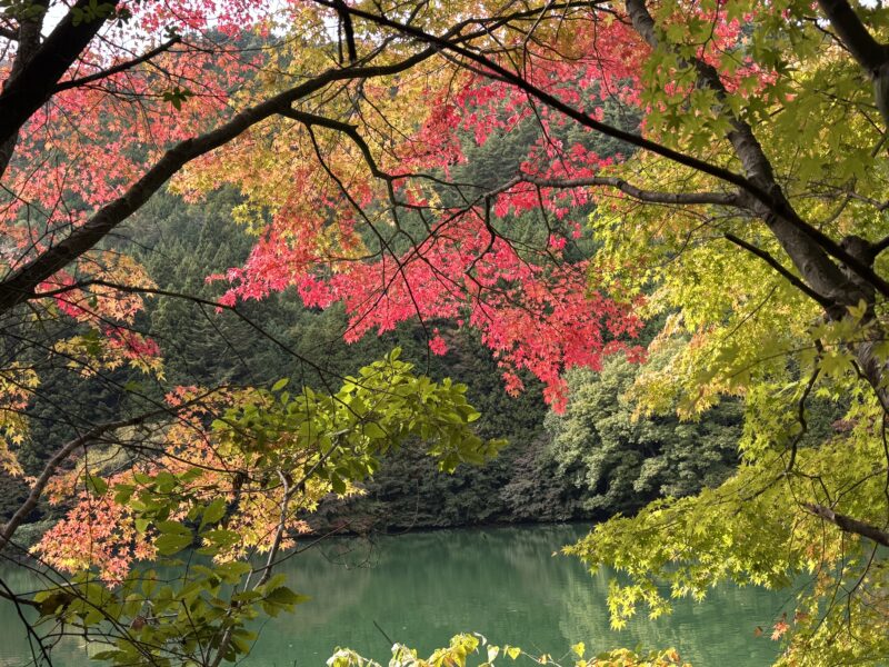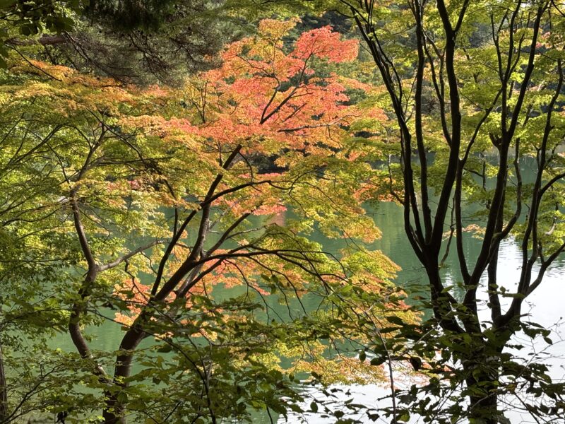 南伊奈ヶ湖に降りると鮮やかに染まる枝葉に出会い、ハッとさせられます。