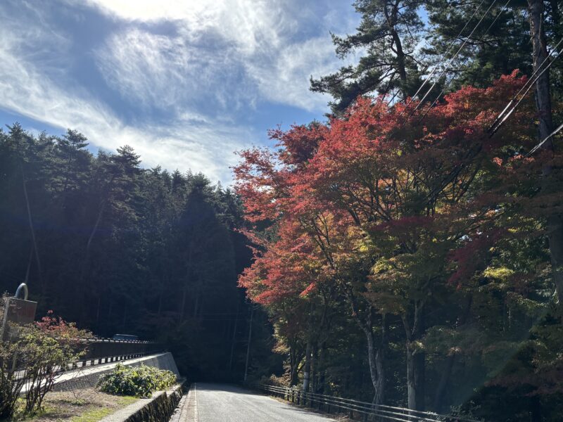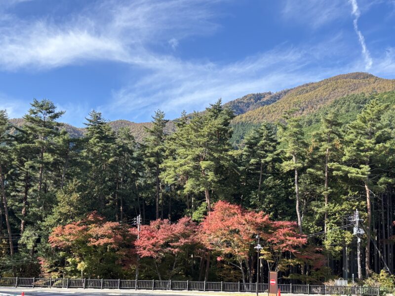 今日は青空に雲がのび、紅葉が映える午前中となりました。