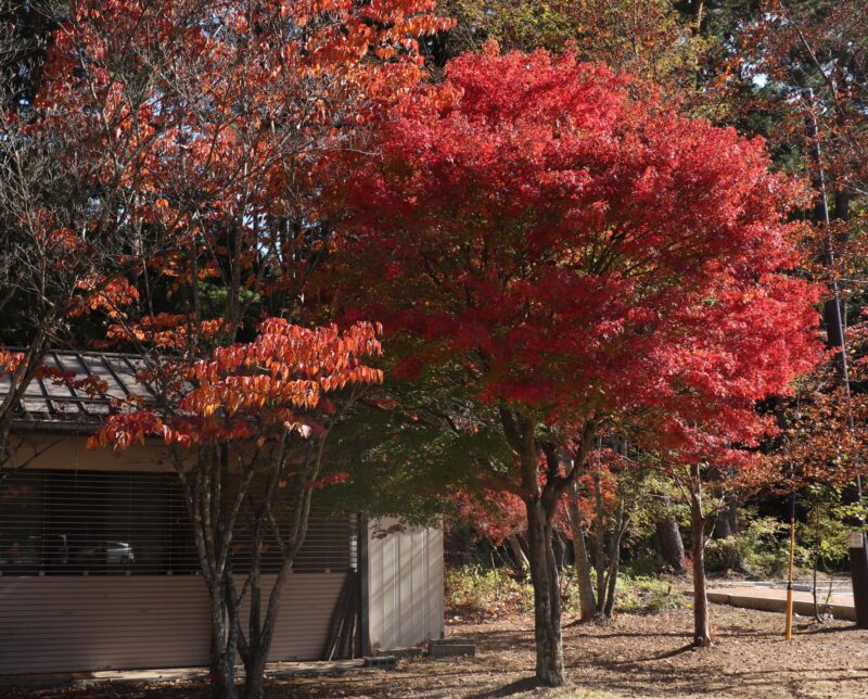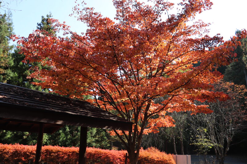 森林科学館前のイロハモミジやレストラン付近のドウダンツツジはかなり赤く染まってきており、大変色鮮やかです。