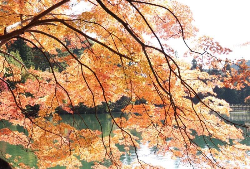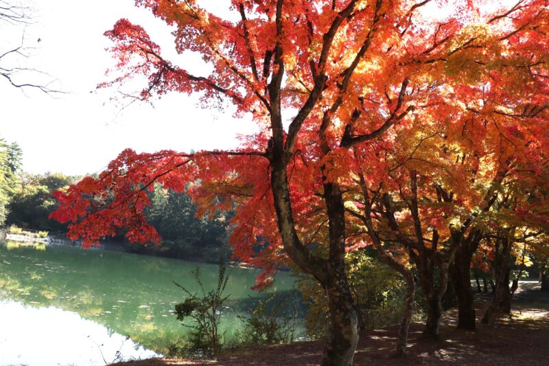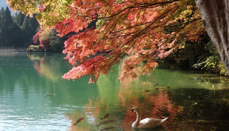 日によっては南伊奈ヶ湖にいる白鳥が近くにきたり、太陽の光に透かされた美しい紅葉を楽しむ事ができます!