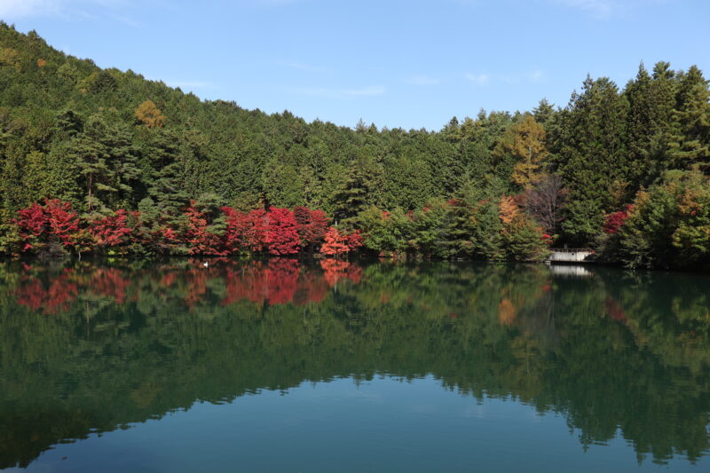 北伊奈ヶ湖のイロハモミジも染まってきており、場所によっては9割ほど色づいています。