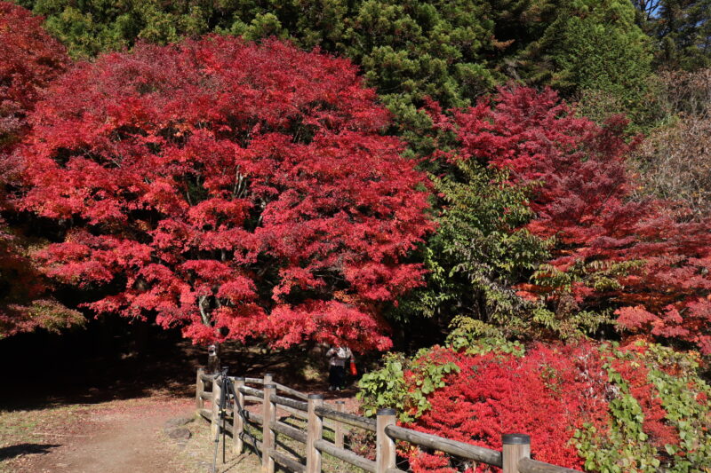 湖面側では燃えるように赤々とした紅葉が見られるのは今がチャンス!