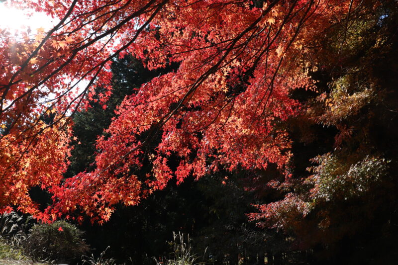 湖面側では燃えるように赤々とした紅葉が見られるのは今がチャンス!