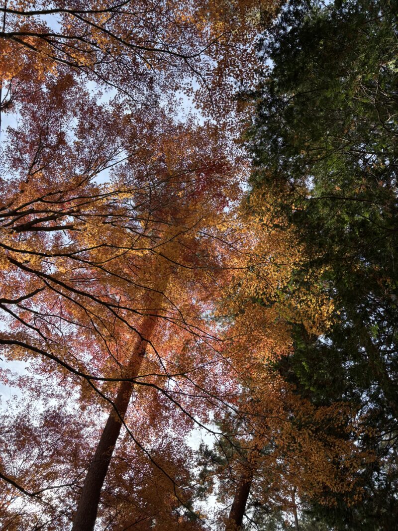 枝の上にもまだ見事な色があり、上からも下からも色に包まれます。