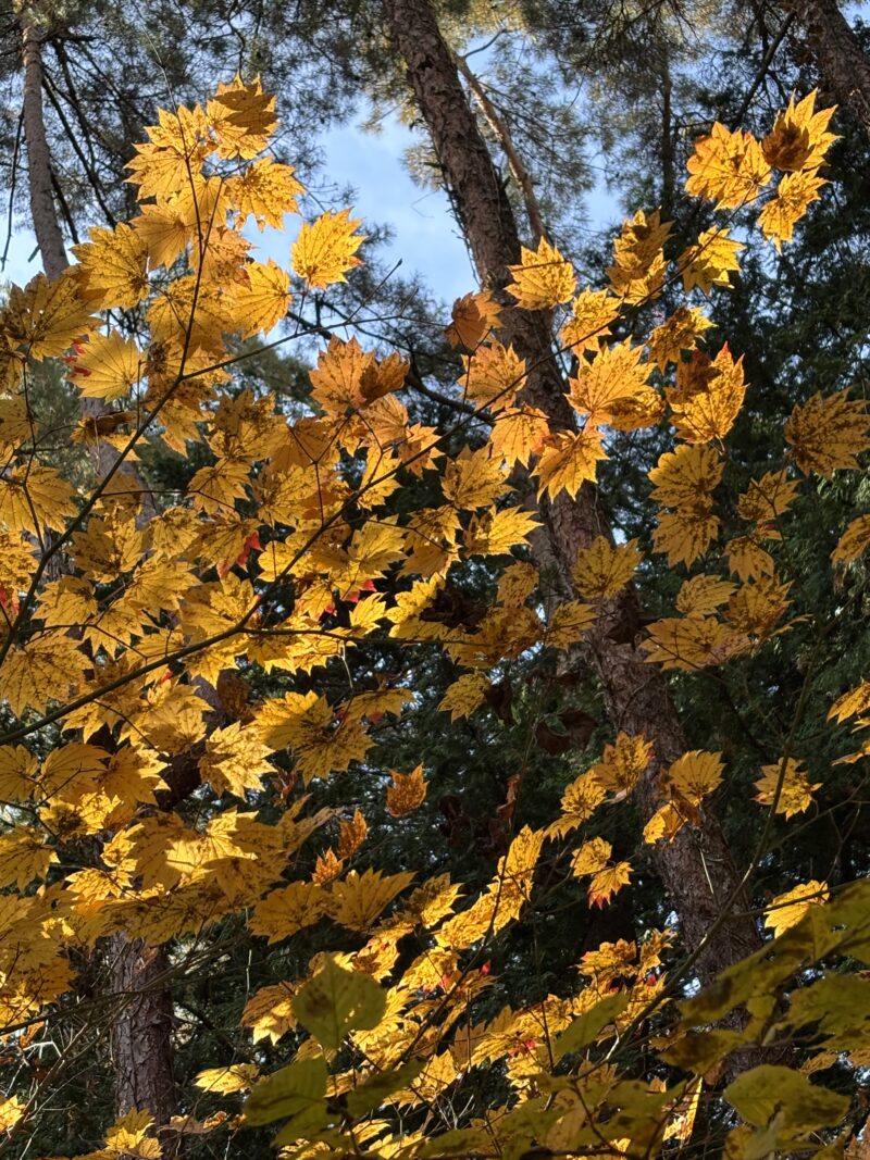 枝の上にもまだ見事な色があり、上からも下からも色に包まれます。