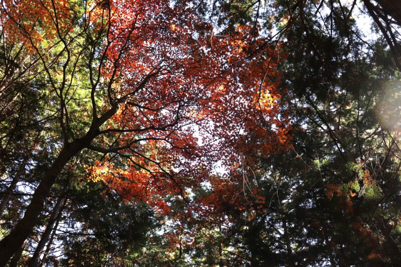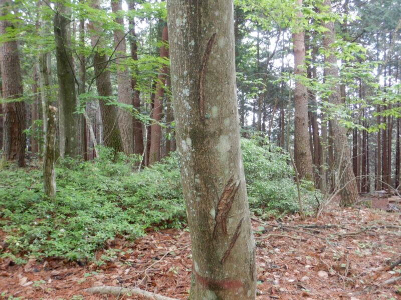 園内散策路【リスのこみち】から、少し外れた森の中に生えるコハウチワカエデ。