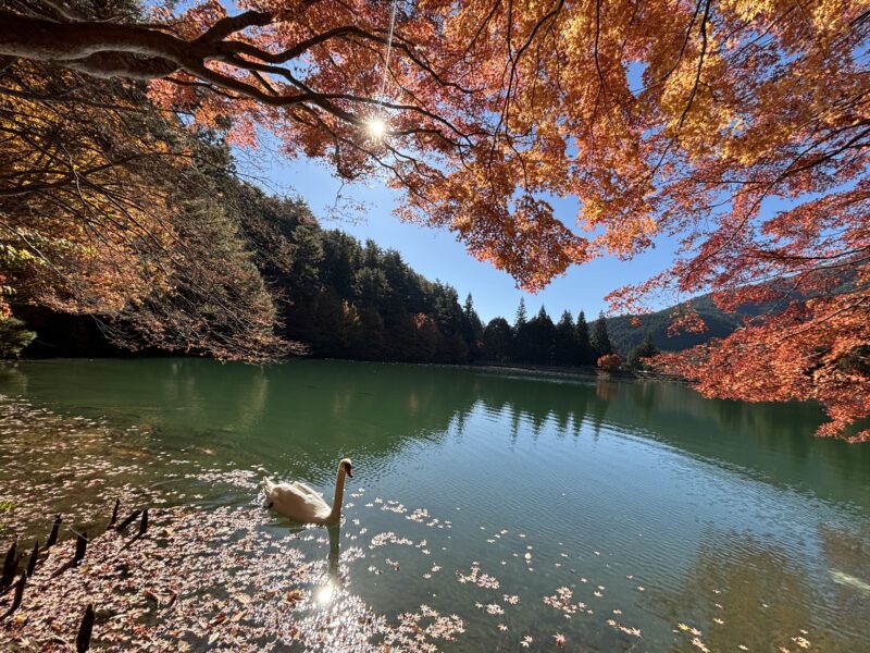 はらはらと落ちる葉が湖面を敷き詰めていきます。