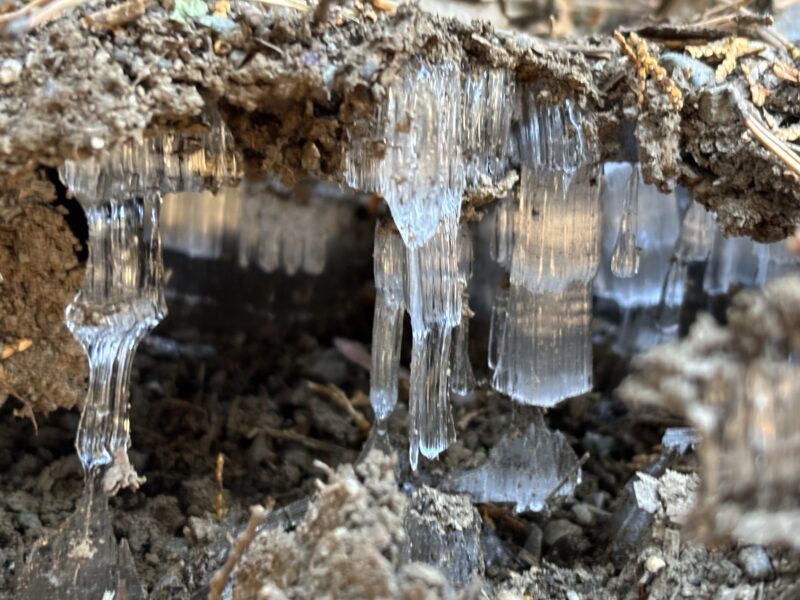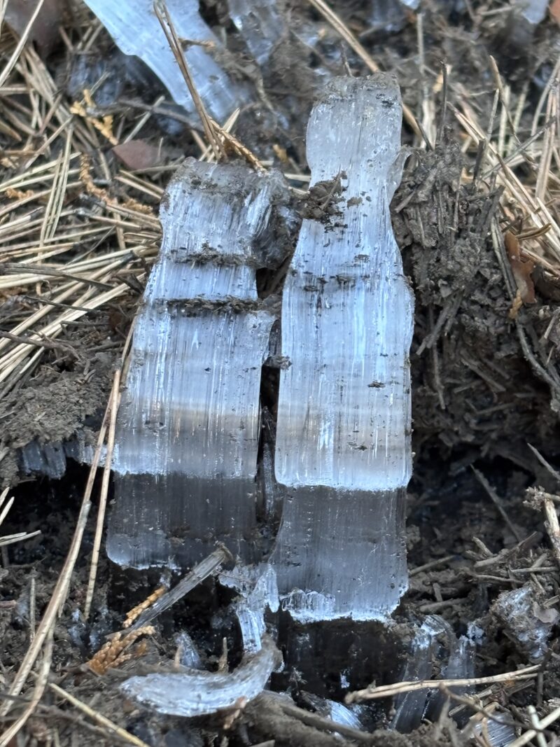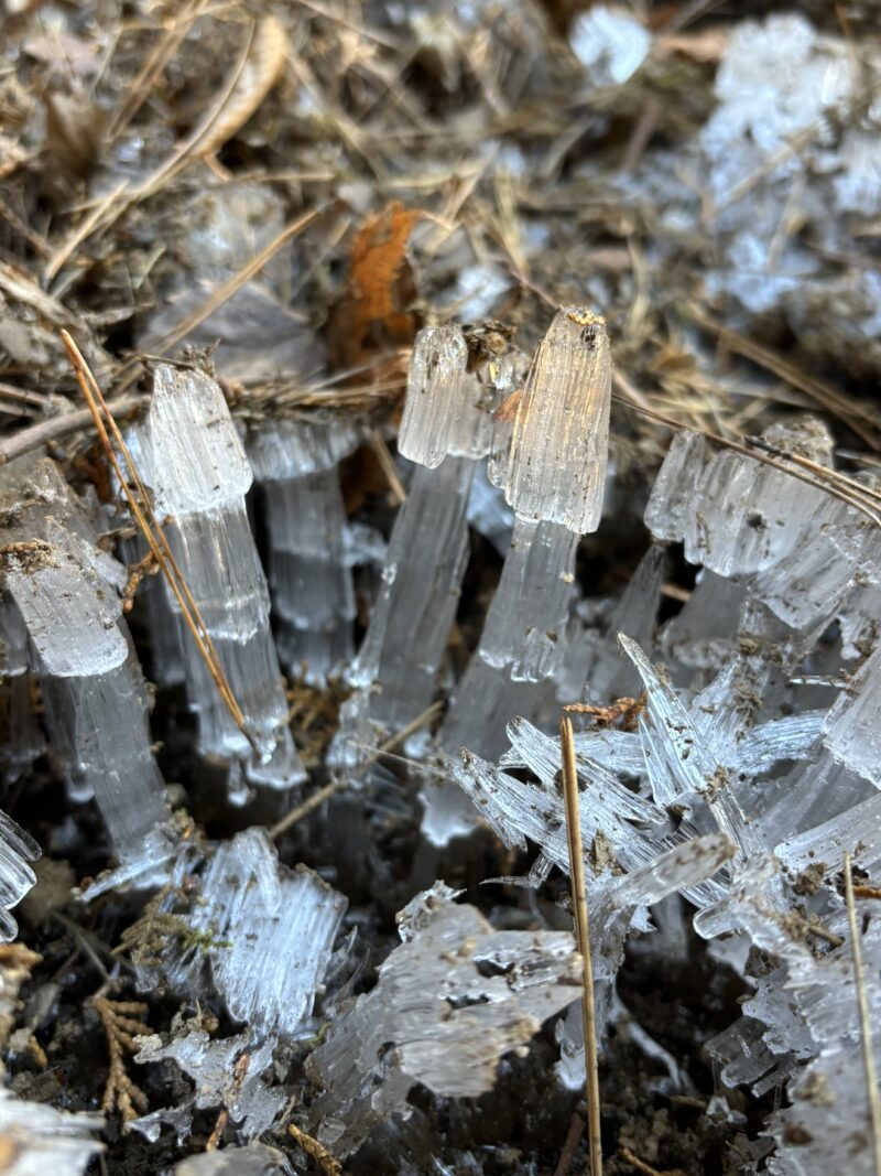 細く繊細な氷は長さ13センチにもなっていました。