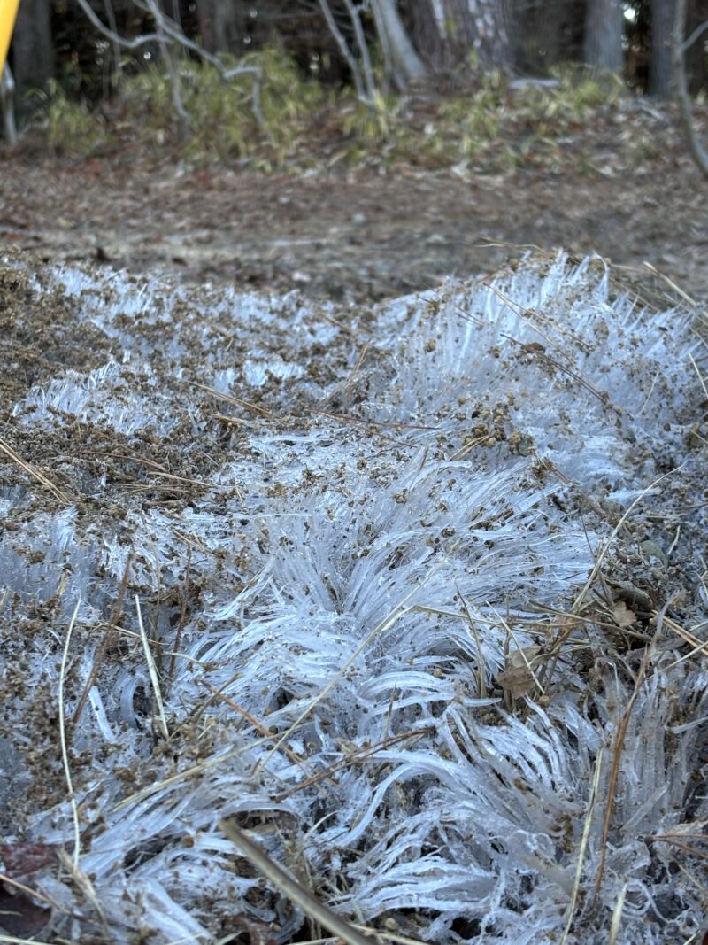 こちらは芝生広場の霜柱です。