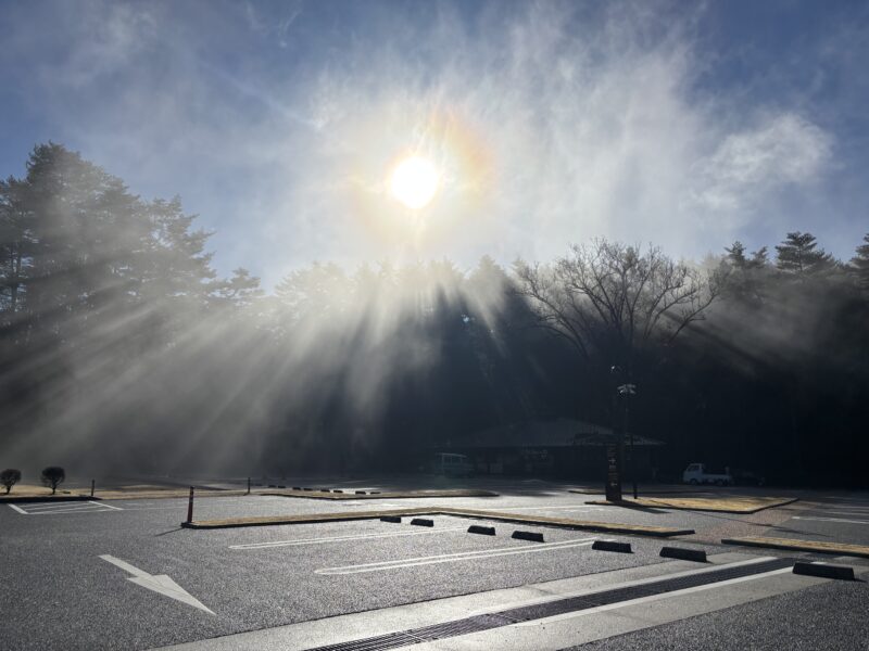 中腹に残った雲の水滴に太陽の光が当たって現れました。